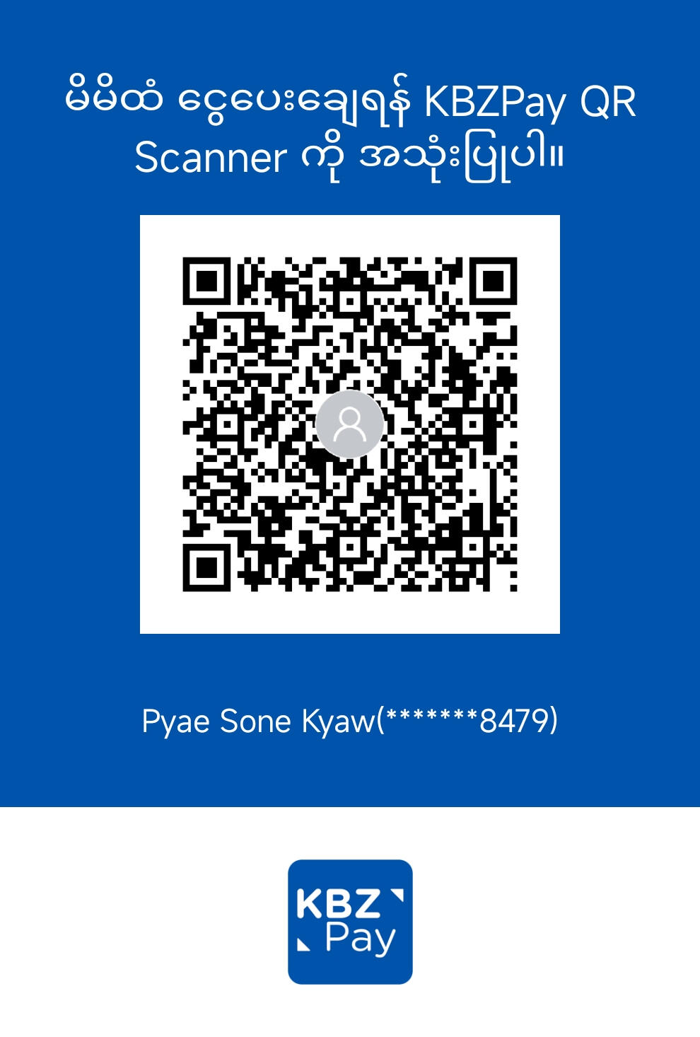 KBZ Mbanking - 11030199935619201 (Pyae Sone Kyaw)