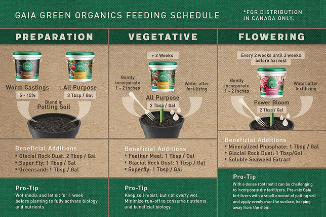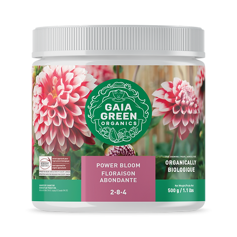 GAIA GREEN Power Bloom သည် မြင့်မားသော ဖော့စဖိတ်မြေသြဇာဖြစ်ပြီး အသီးအပွင့်နှင့် အသီးအနှံများကို ပံ့ပိုးပေးရန်အတွက် အထူးဖော်စပ်ထားသည့် မြင့်မားသော ဖော့စဖိတ်မြေသြဇာဖြစ်သည်။ ရလဒ်အနေဖြင့် GAIA GREEN Power Bloom သည် အမြစ်ဖွံဖြိုးမှုနှင့် ပန်းပွင့်ချိန်နှင့် အသီးအနှံအားလုံးအတွက် ကျွန်ုပ်တို့၏ အကောင်းဆုံးမြေသြဇာဖြစ်သည်။ အော်ဂဲနစ် GAIA GREEN Power Bloom ကို Ecocert Canada မှ အော်ဂဲနစ်စိုက်ပျိုးရေးတွင် အသုံးပြုရန် အတည်ပြုထားသည်။ ကနေဒါ၏ အော်ဂဲနစ်ထုတ်လုပ်မှုစနစ်များ အထွေထွေအခြေခံမူများနှင့် စီမံခန့်ခွဲမှုစံနှုန်းများနှင့် ခွင့်ပြုထားသောပစ္စည်းများစာရင်းများ (CAN/CGSB 32.310-2015 နှင့် CAN/CGSB 32.311-2015)အကျိုးကျေးဇူးများ