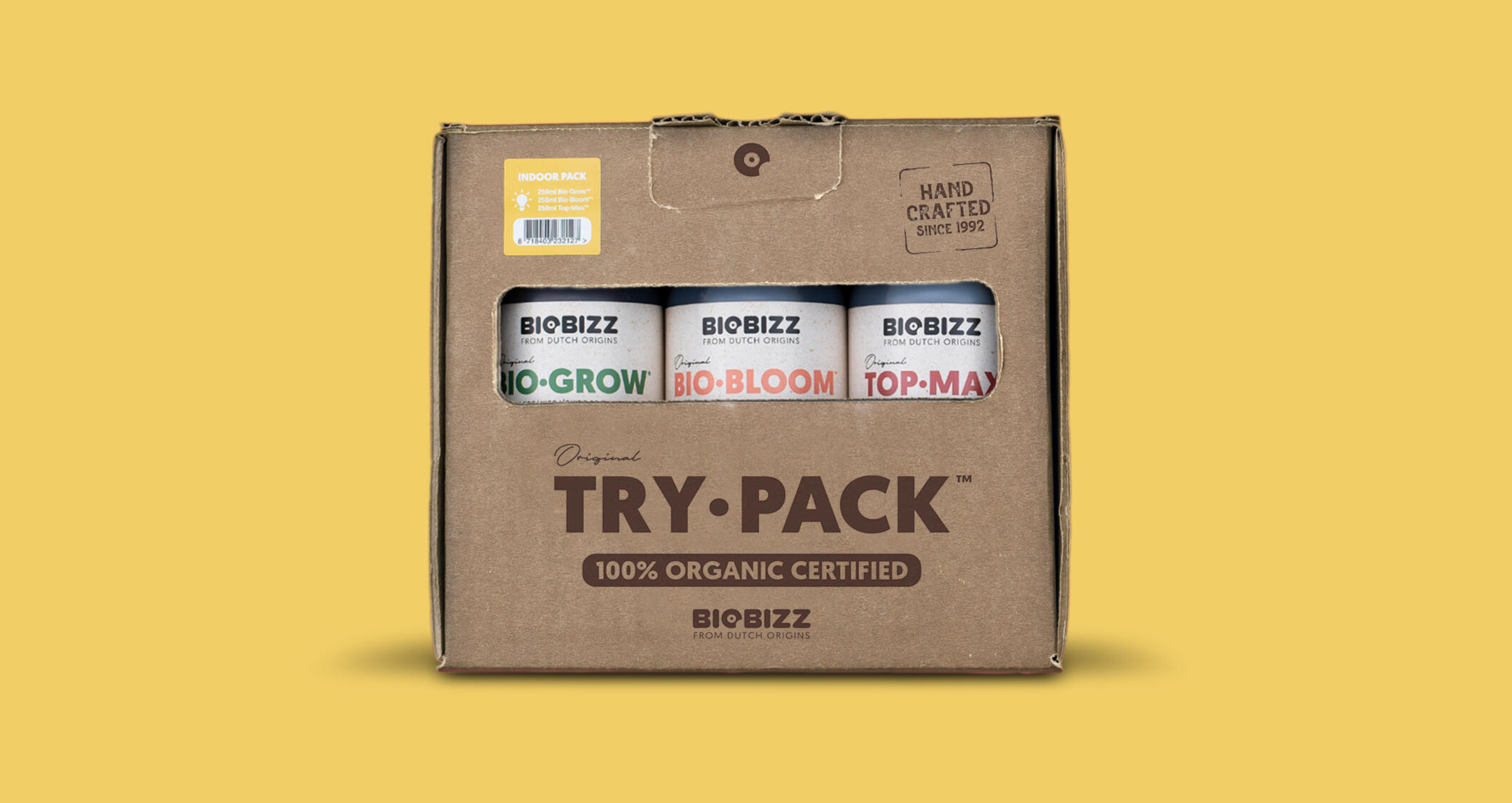 If you’re into the idea of indoor cultivation but not sure how to start, try the Biobizz Try·Pack Indoor. It joins the four members of our Try·Pack family and makes it simple to gain experience using the Biobizz range of organic fertilizers.You can’t go wrong with this high quality, great value, complete pack. Designed to be easy to handle, it can also be combined with any other Biobizz products or Try·Packs to maximise your crop and minimise costs. This combination provides basic feeding for 1-4 plants.